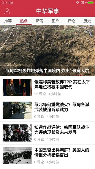 2、热点:新鲜、热门的军事话题、资讯,实时展现在您的面前。